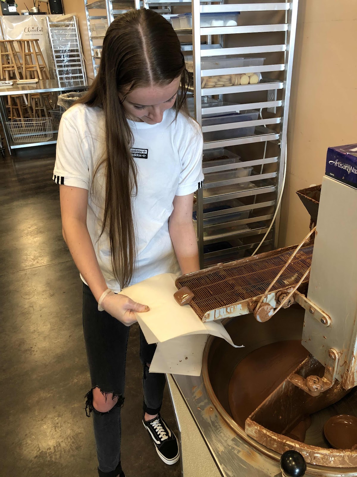 But first we did something else amazing! Addie found a crazy fun place for us to go to called Just Add Chocolate. We did a chocolate workshop and we each got to take a half pound of chocolate and do whatever we wanted with it! Me, Keags, Rys, Sa, Todd, Sami and Addie all made different concoctions with milk, white and dark chocolate. We filled them with tons of different things like nuts, truffle batters, peanut butter, candys, caramels, sprinkles etc. And we covered lots of different things in chocolates like toffee, strawberries, pretzels, cookies, and even potato chips and bacon! It was an absolute blast and definitely delicious!